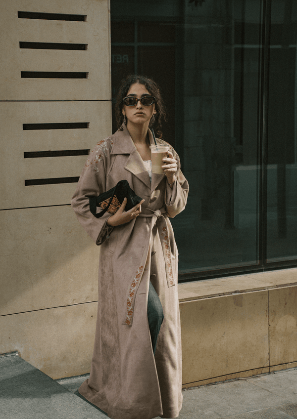 Joury جوري Hand-Embroidered Maxi Suede Coat