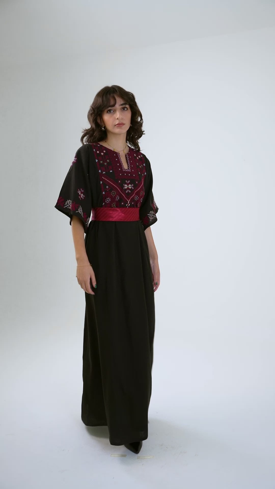 Hand embroidery on Linen - Traditional Palestinian embroidery - Wide short sleeves - Thobe cut