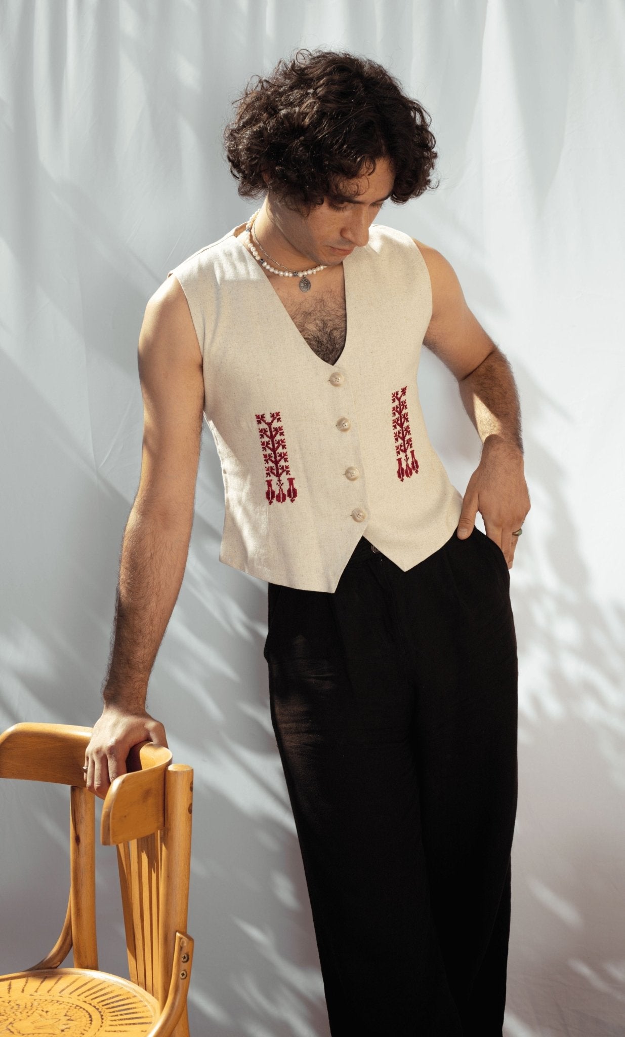 Natural linen - Intricate Palestinian hand embroidery - True to size - We ensure fair pay and full support to all artisans involved in the making of this product